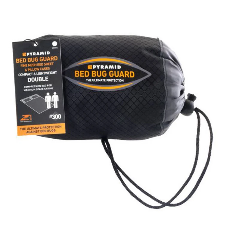 Die Pyramid Bug Sheet Unterlage wird ganz einfach unter das Bettlaken gelegt und wehrt ungebetene Gäste wie Bettwanzen effektiv ab. Es besteht aus feinem, imprägniertem Netzmaterial und sorgt für einen tieferen Schlaf. Durch das integrierte Kissenfach bietet die Bug Sheet Unterlage ein Plus an Komfort.Die Permethrin-Imprägnierung der Pyramid Bug Sheet Unterlage hält für zwei Jahre bzw. 35 Waschgänge. br>span style=“font-weight: bold;“>Bitte beachte die Warnhinweise des Herstellers bezüglich der Wirkstoffe und Anwendung.span>br>